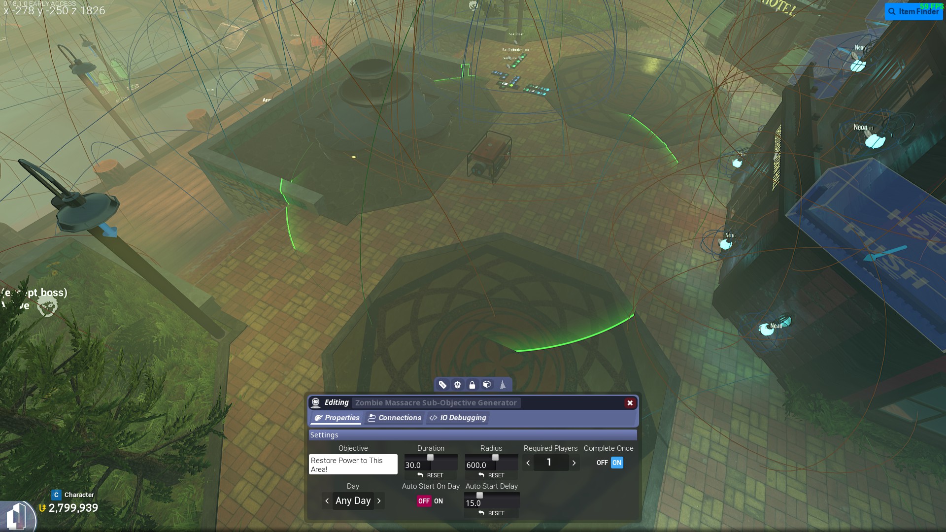 The green radius around sub-objectives gets cut off starting at around 510 Radius size.
