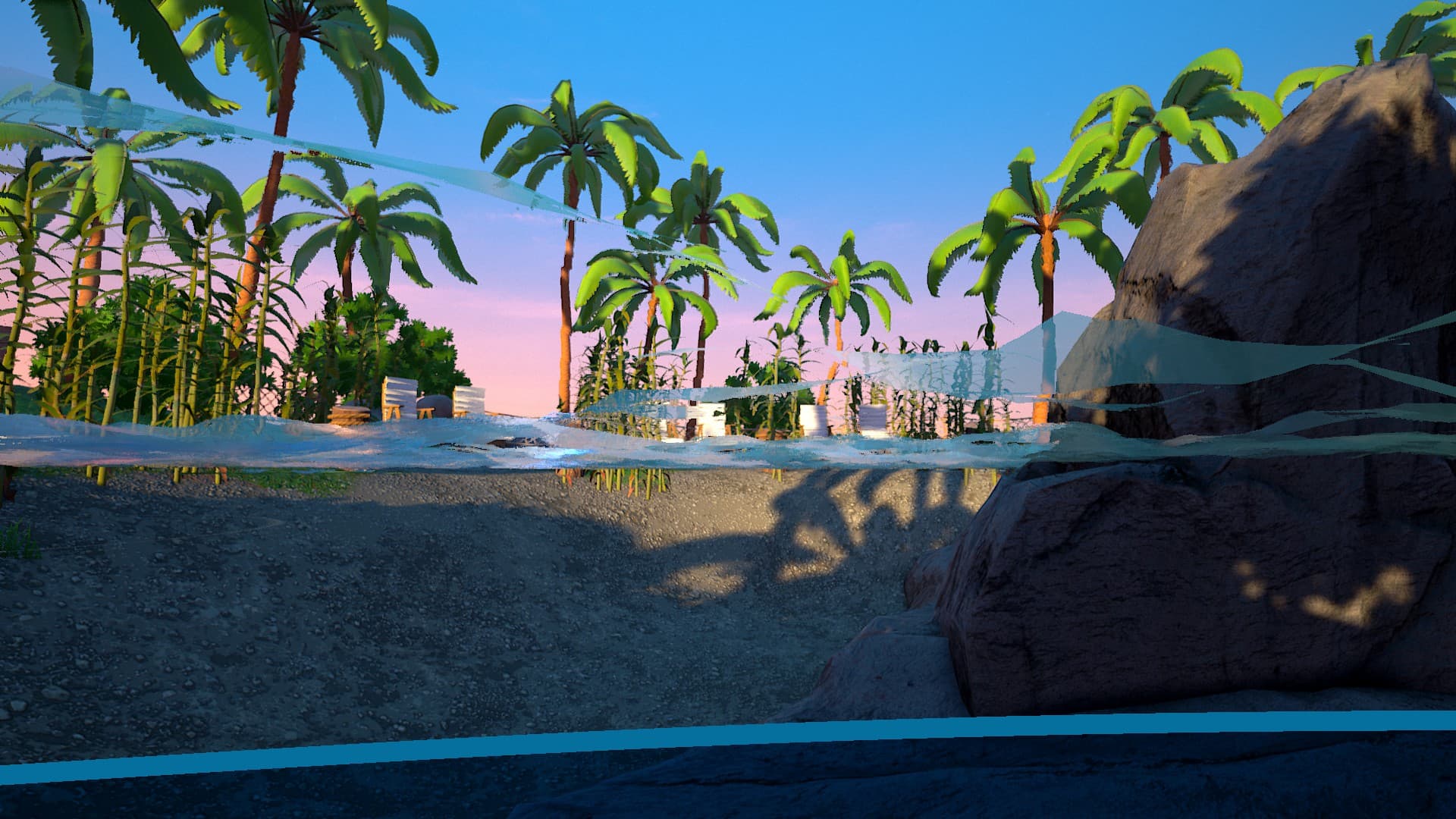 Additionally the visible separation line between above and below water on the player’s screen is also completely disconnected from the actual position/displacement of the water.
