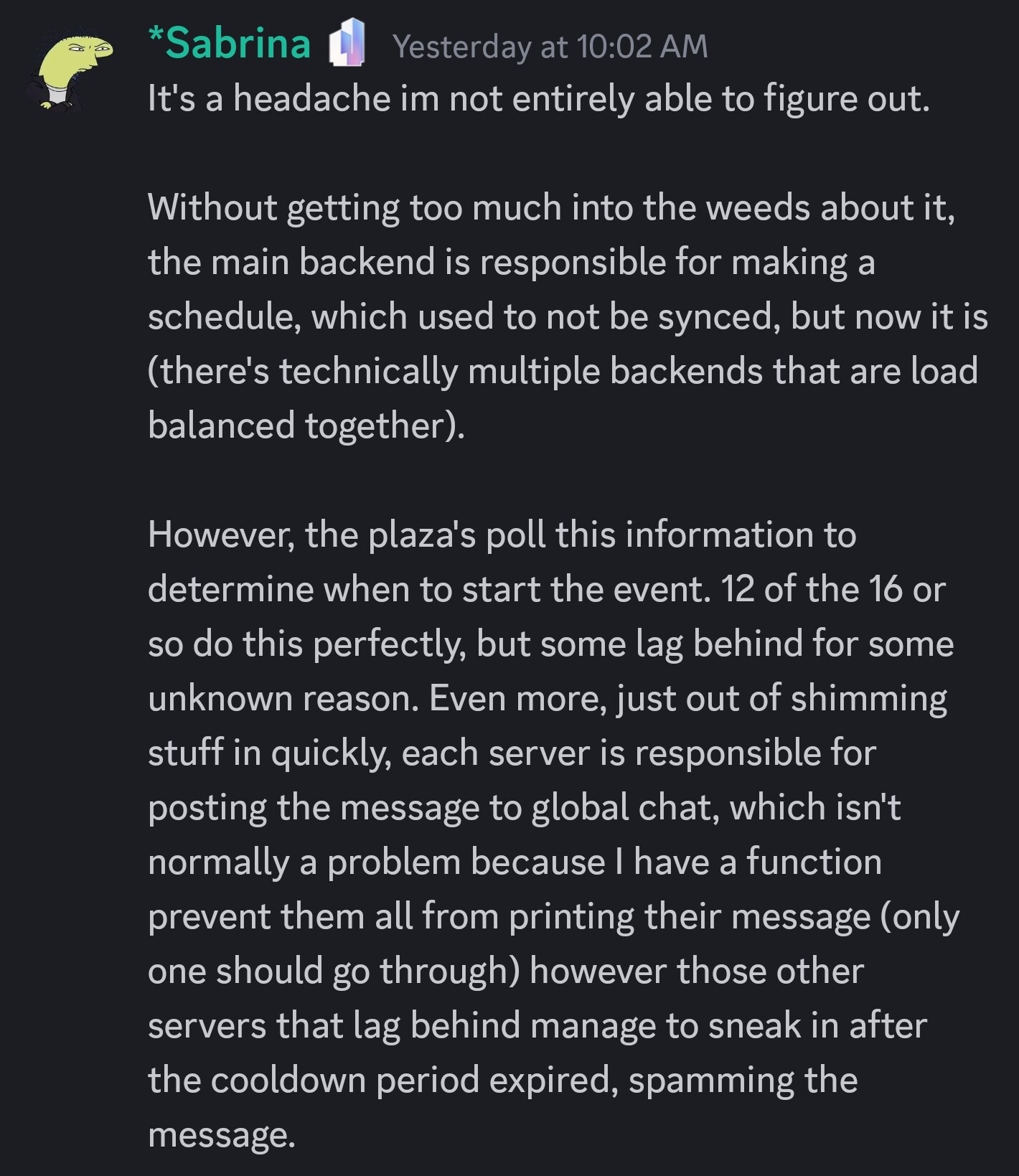 Without dredging up too much - why not just not have them desynced? Whenever there’s treasure from sea or goulish remains, people just server hop all the time to max farm them, so they actively don’t speak or do any other activity so they can speed-run gaining as many as possible within the spawn period. Is that really the intended player behaviour? I’m on the assumption that this would solve your engineering challenge.