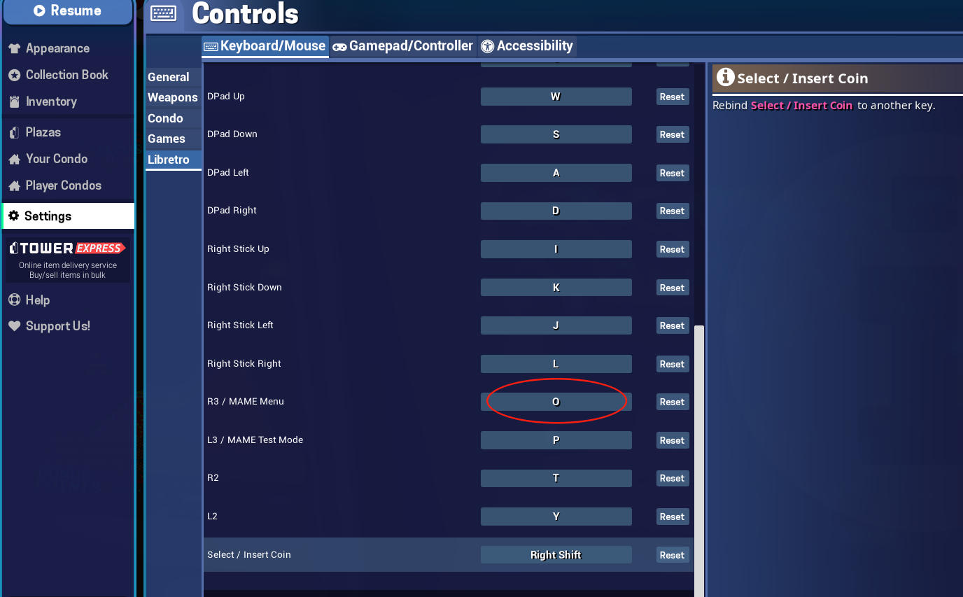 First, the default menu and test keys are set to F1/F2, which conflicts with TU’s Libretro menu. So if you want to open the MAME menu, please set it to a separate key. eg. O,P