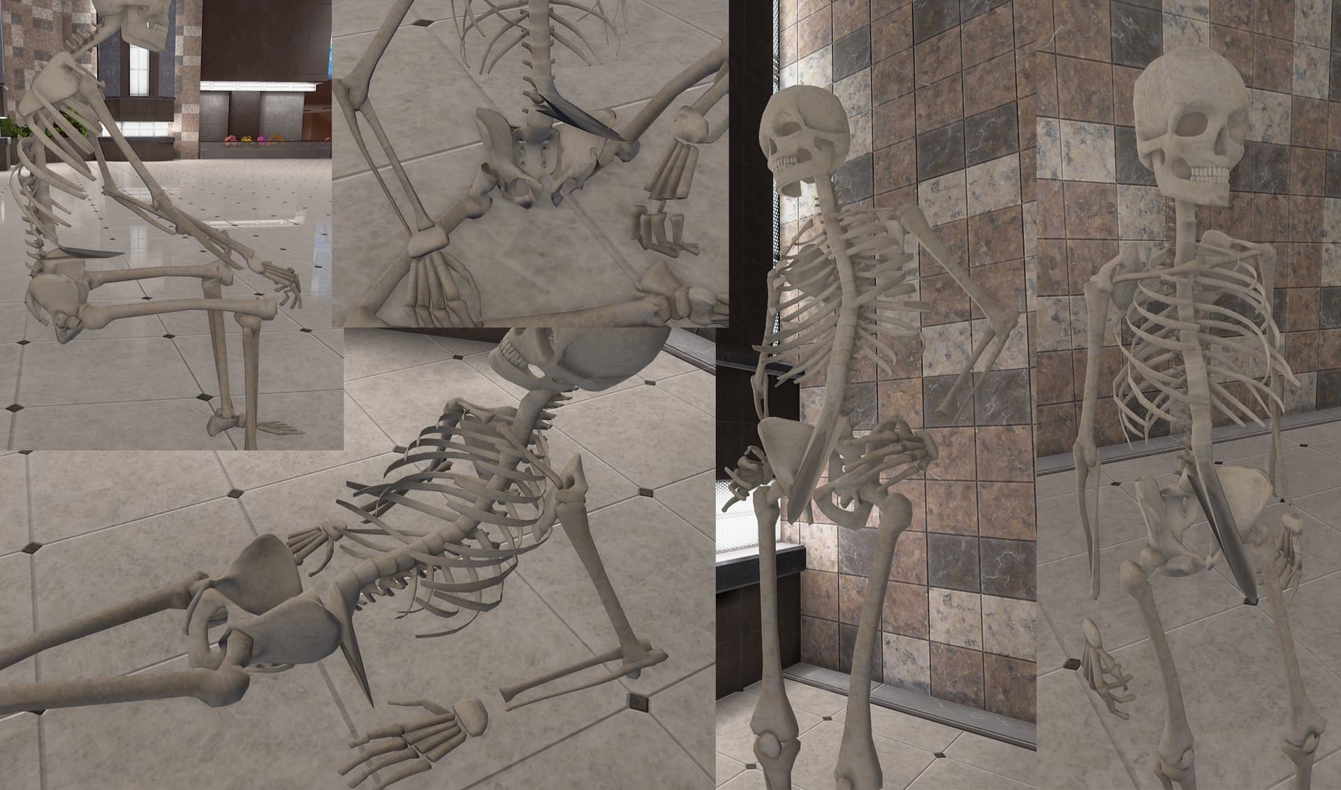 The “Skeleton” NPC model has a spot on the lower spine/right above the pelvis that looks like it’s not weight painted so it’s sticking out with most poses. It affects almost every sitting pose, laying back, “sassy,” “waiting,” etc.