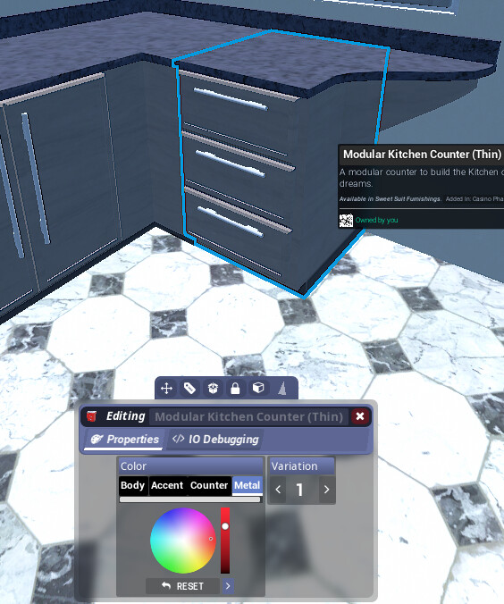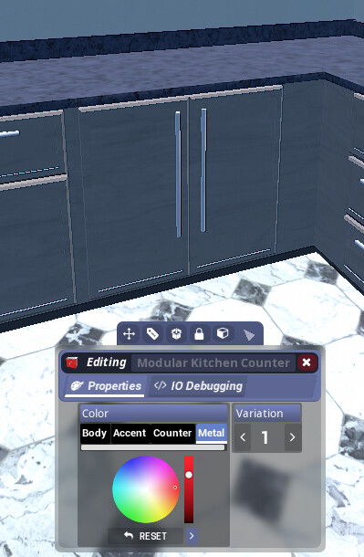 This isn’t part of the bug but was wondering if the Modular Kitchen Counter Sink’s sink was supposed to be part of the metal?/ Could we have a separate color picker for the sink and the metal accessories? thankies aaa