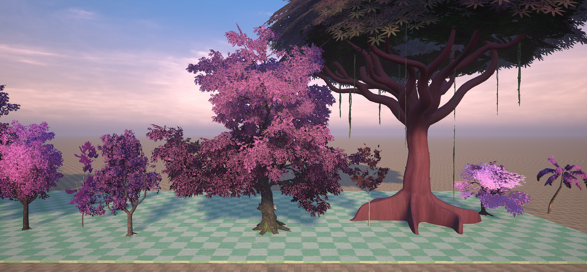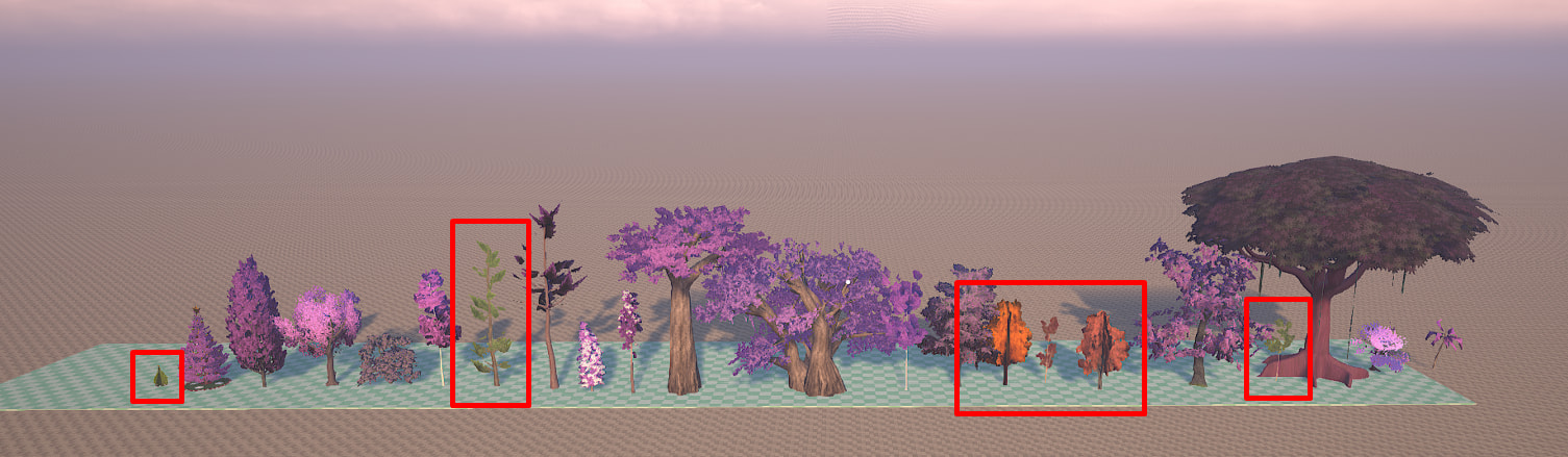 Some of trees’ LOD models has default colors regardless of color you chose for them.