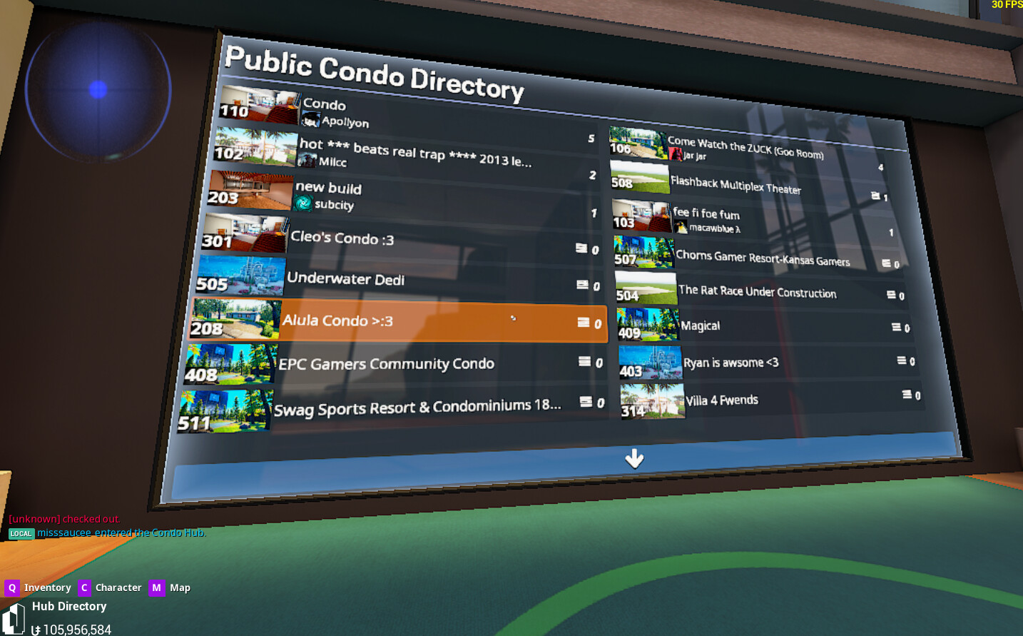 - Check the Condo Hub doors for a server that would normally be tagged as Mature.