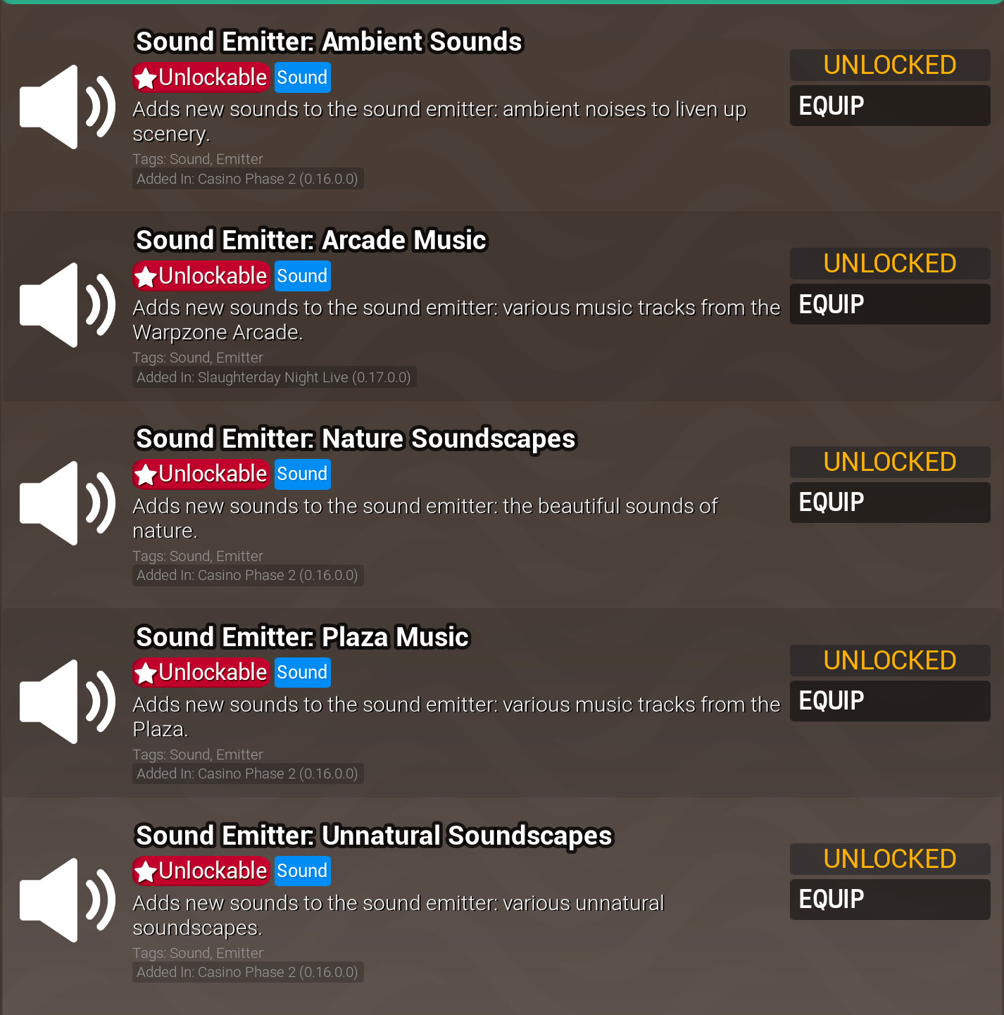 I’m just suggesting this so people who don’t wanna rely on the Workshop all the time can have more options. It’s been a while ever since the addition of sound emitter packs, and while the ones that we have are good enough for most of the situations there’s a severe lack of generic SFX you can hear throughout the game and even the OST.