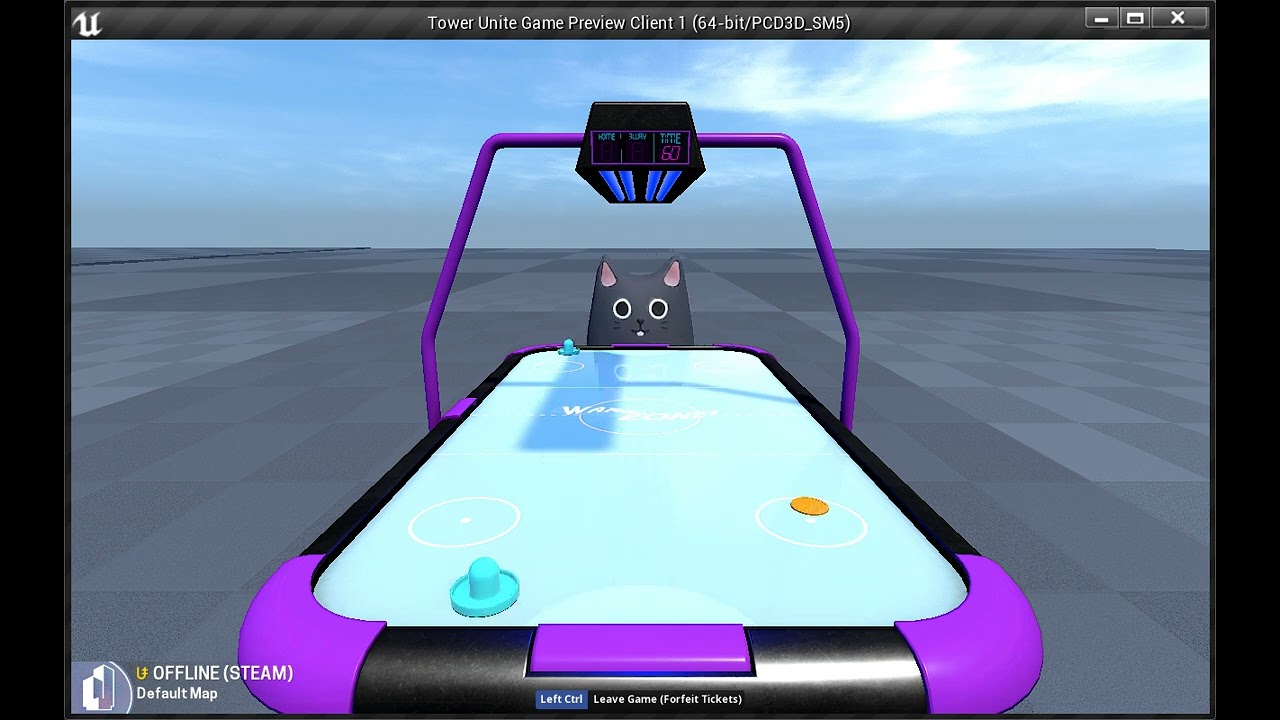 Air hockey is finally coming to Tower Unite! It has been a long time, but we’ve made a lot of progress as developers, and have made some great strides in getting this feature functional. Mac has been programming the general gameplay as well as a CPU player for singleplayer matches!