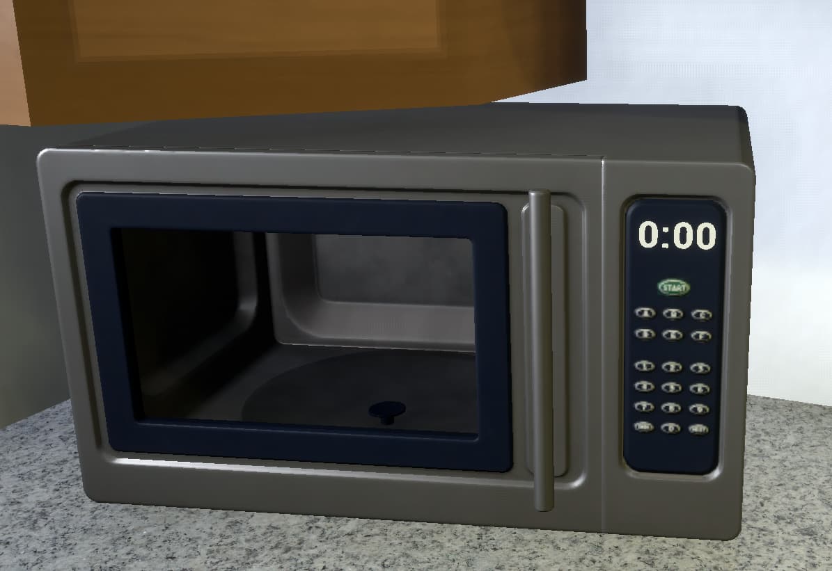 The microwave doesn’t display the time like most real microwaves do, it only has space for 3 numbers, and the display isn’t seven-segment like most microwaves either.