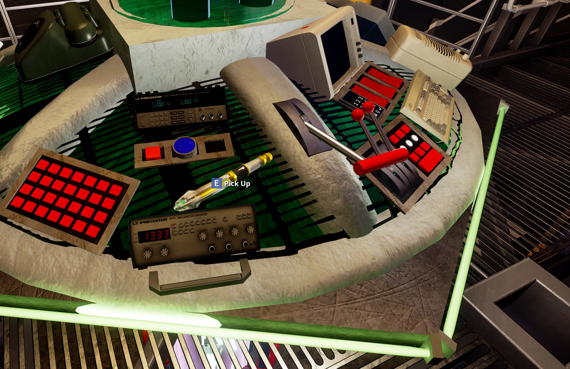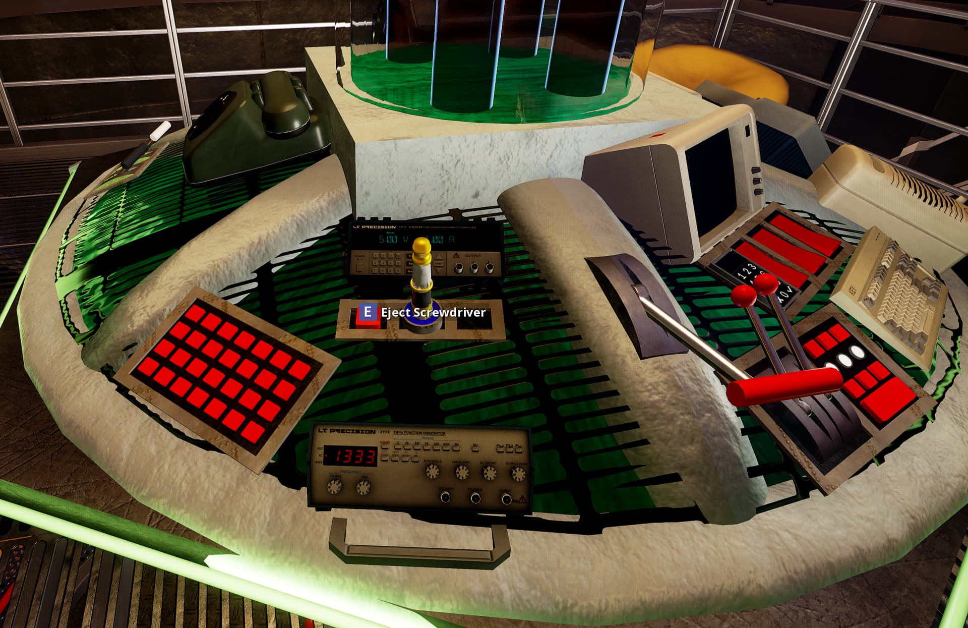 Pressing the eject button next to the socket will eject the screwdriver, which is a physics item. It can’t be used for anything else, but it makes a good blunt instrument.