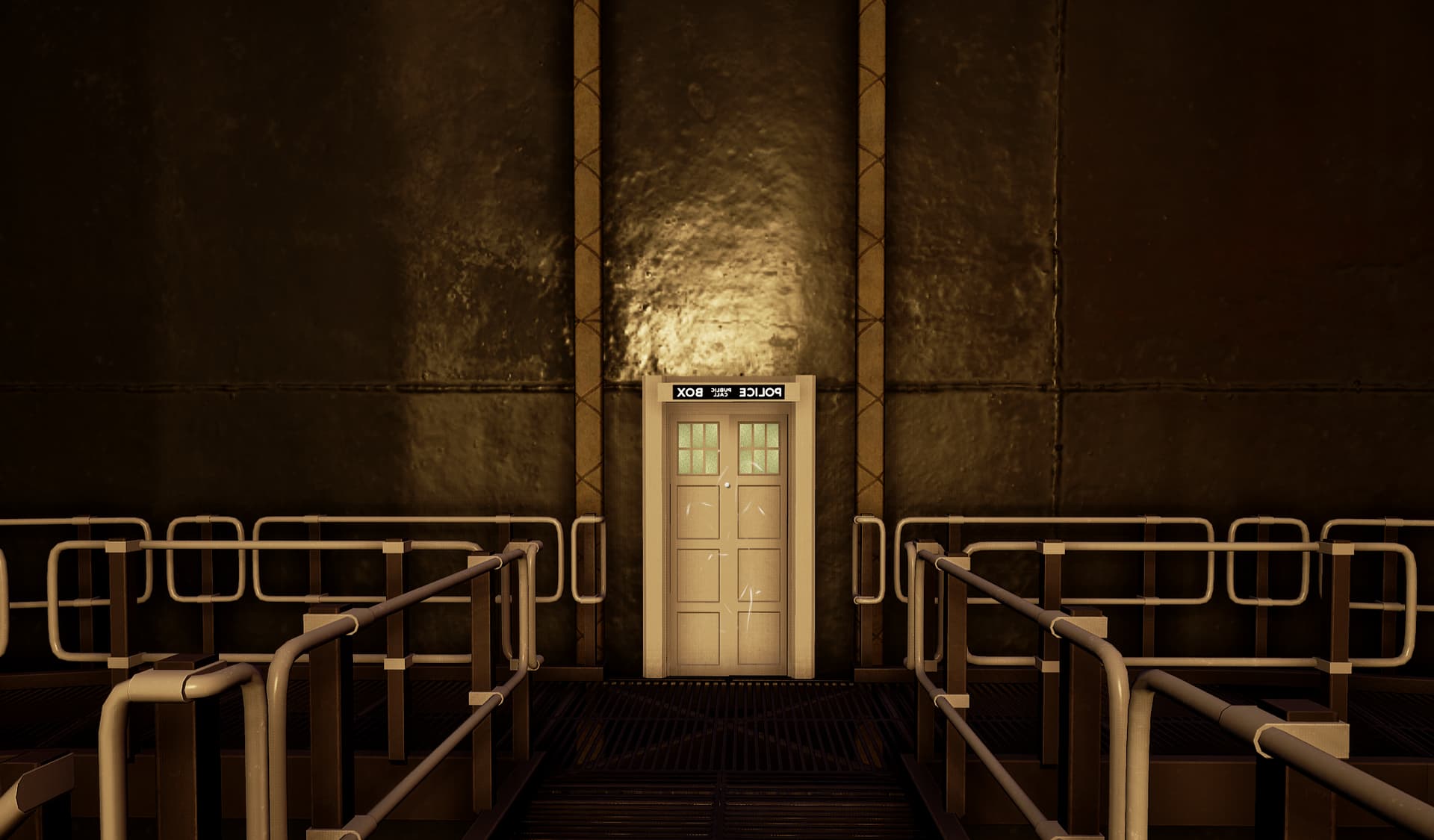 Here’s some shots of the console room! The transition is pretty seamless in-game, but obviously I couldn’t achieve a real “bigger on the inside” effect.