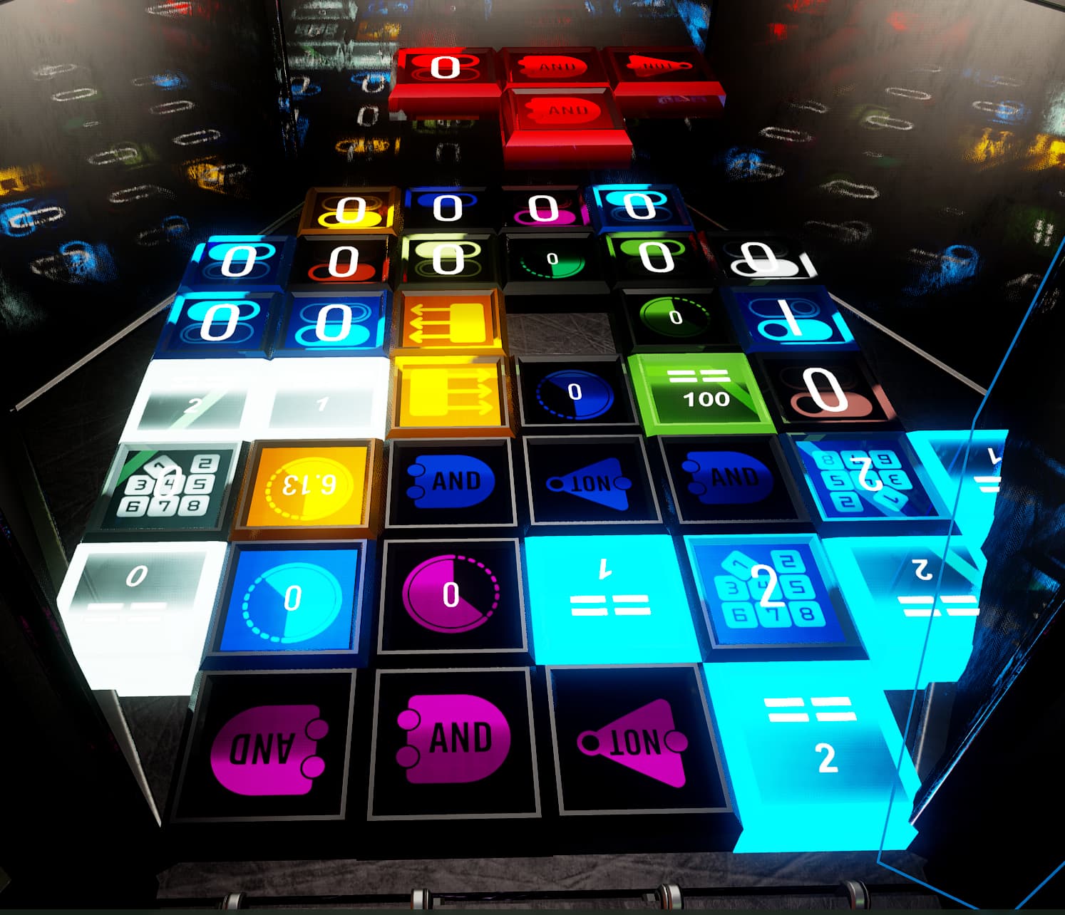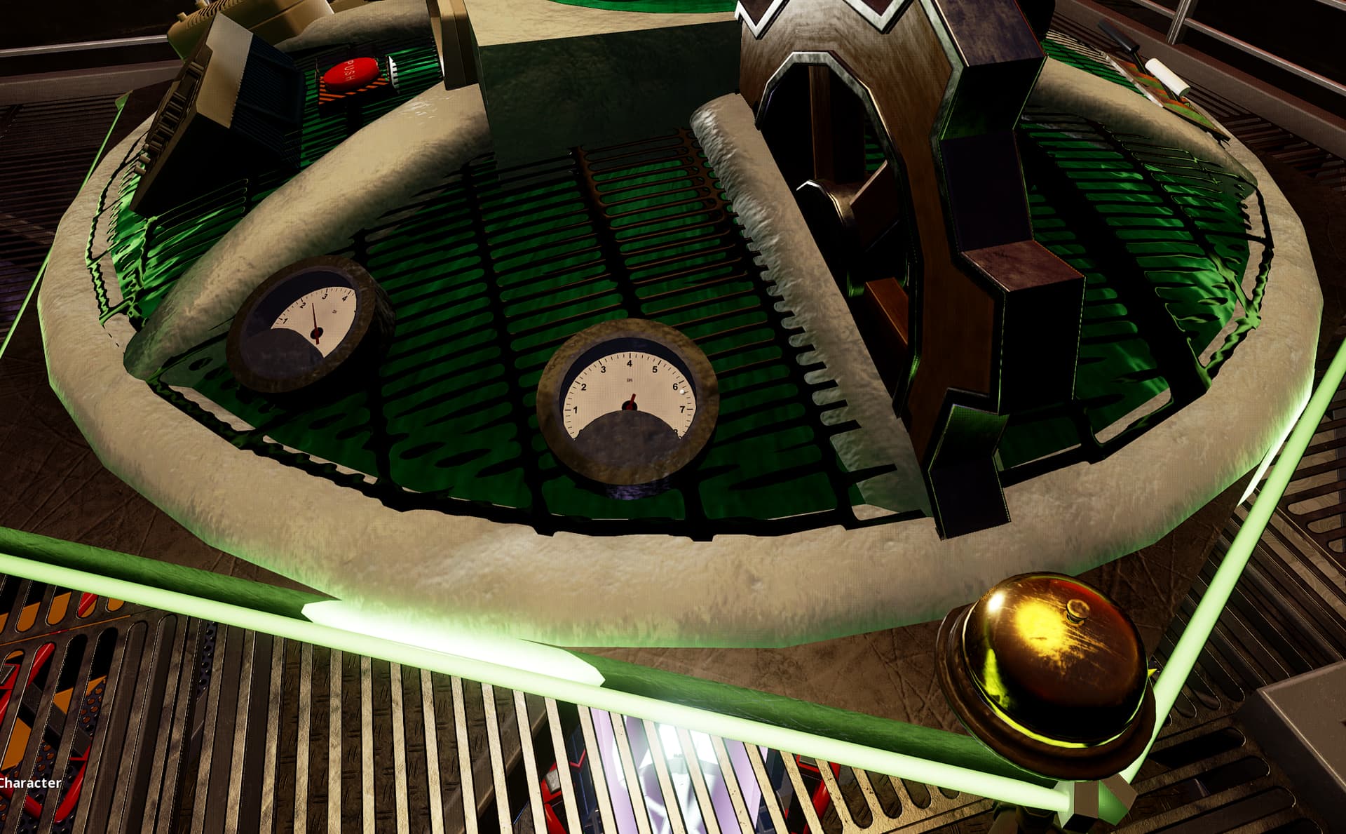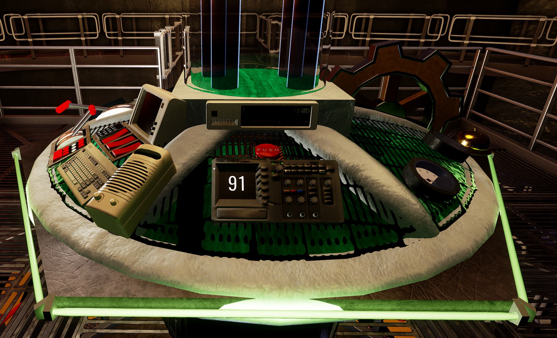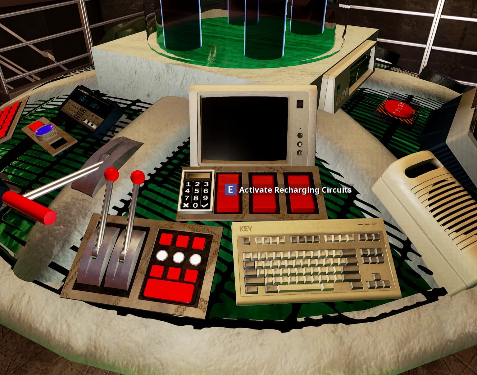 The most important system is the power system. On this panel, you can see a (admittedly really sketchy!) readout of how much power is currently stored in the capacitors, ranging from 0% to 100%, as well as the main power switch.
