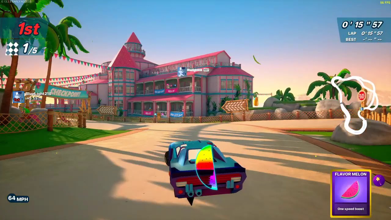 I never really considered this a big issue until I noticed a player taking shortcuts in first place without having any boosts from melons. In my opinion, I feel like the shortcuts should really only be able to be taken if the player has a boost from a melon or a nearby boost pad. I discovered today too, that the entirety of Sunrise Isles shortcuts can be taken without any melons, which is the video I recorded below. Now that I know you can do these shortcuts with only power from a boost, I messed around with Pine Valley to see what was possible, and every single shortcut can also be taken efficiently without any melon boost. (I’m excluding Bedzoom and Waterfall due to them not having any off road for shortcuts.)