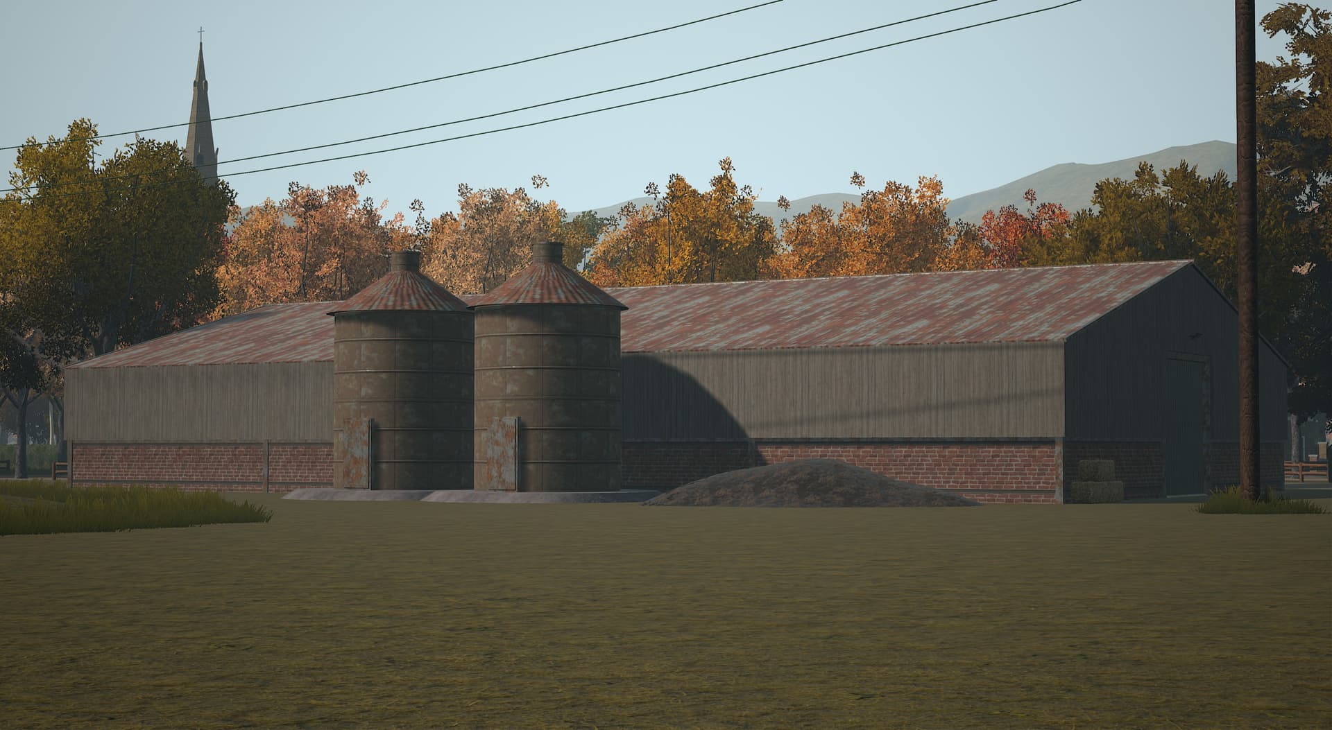 Added two silos/grain bins next to the big barn. I’ve also redesigned one of the utility poles (can be seen in the distance to the right)