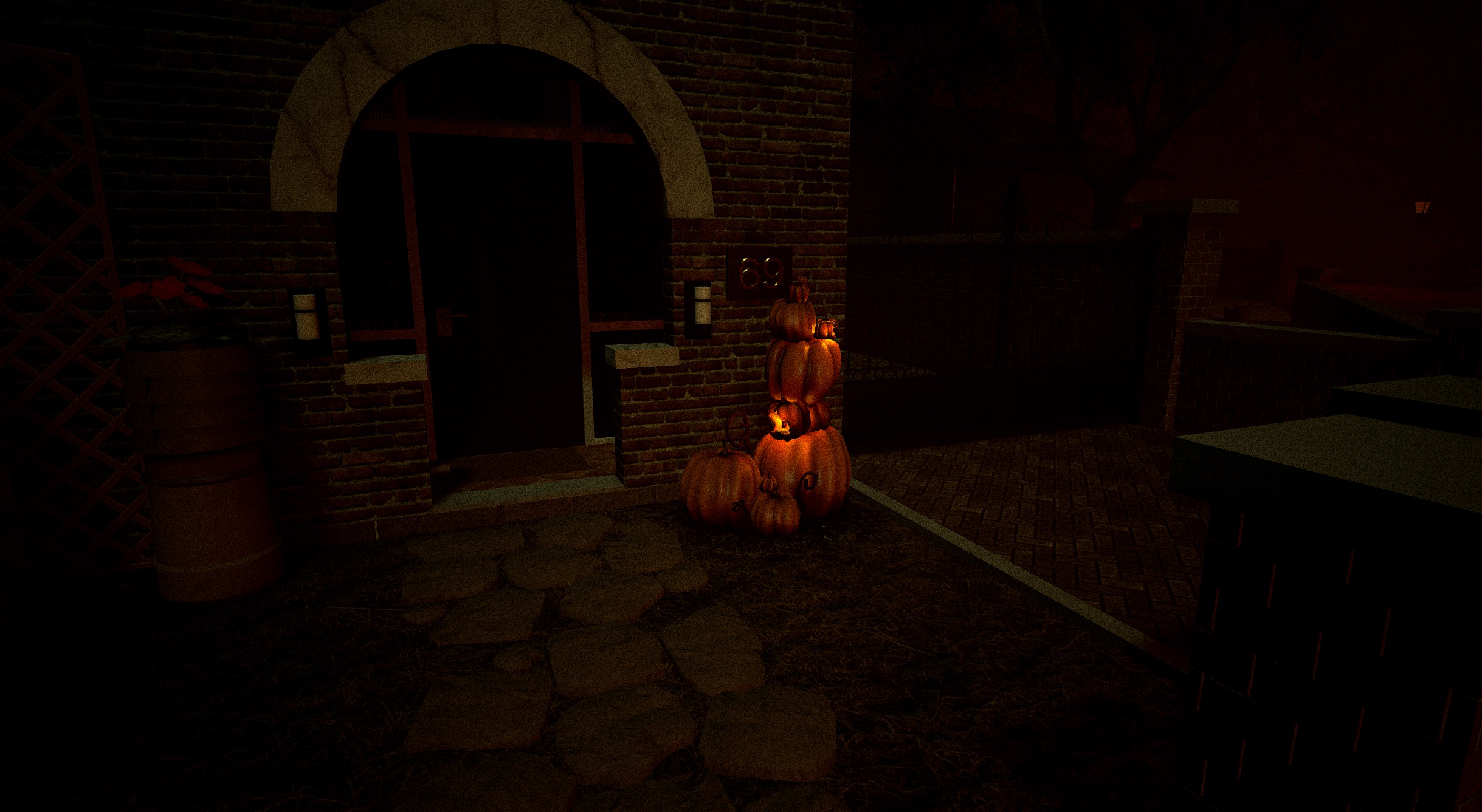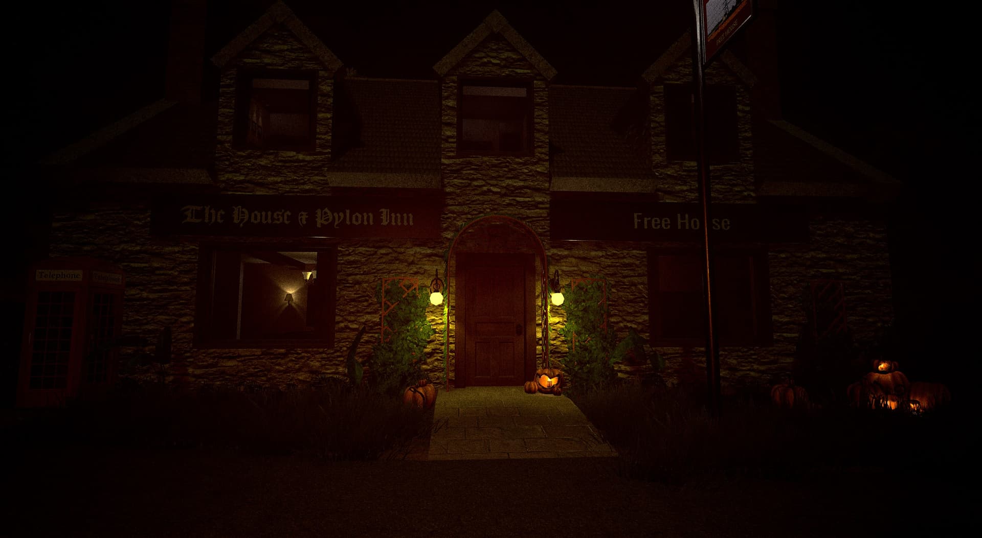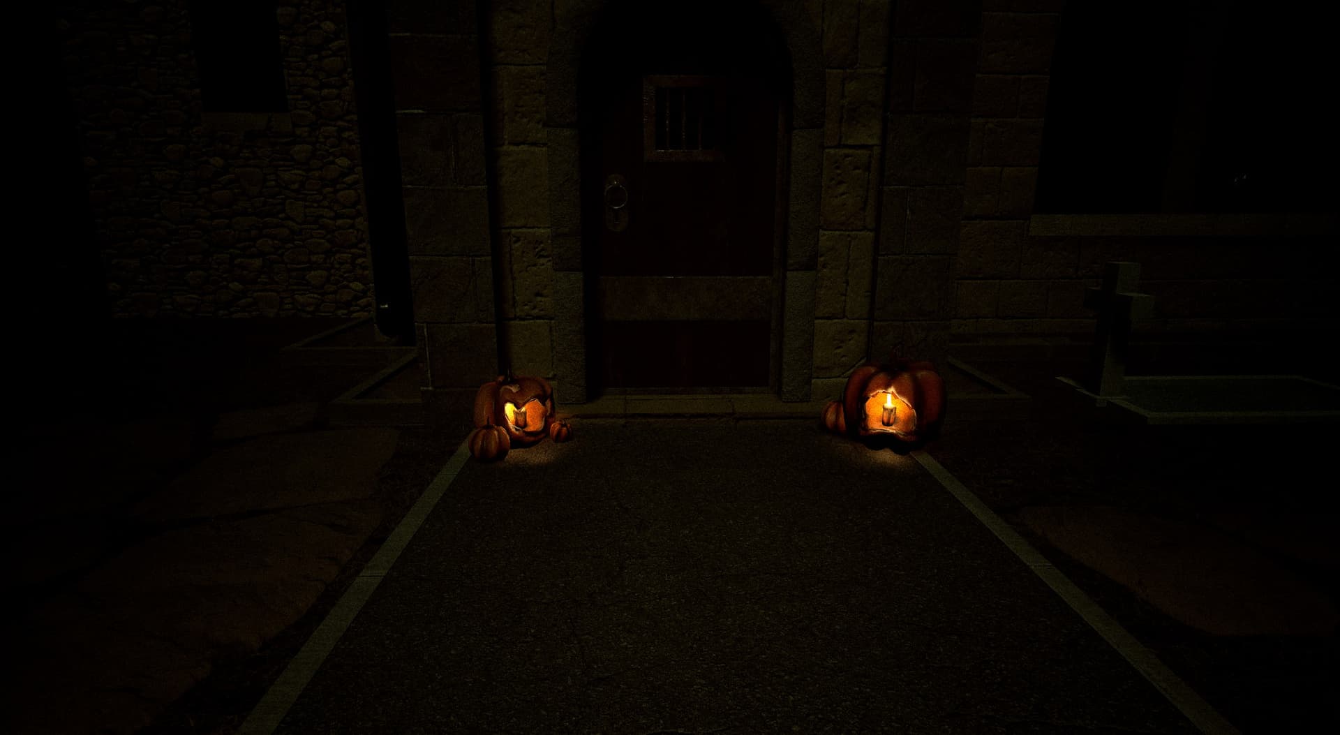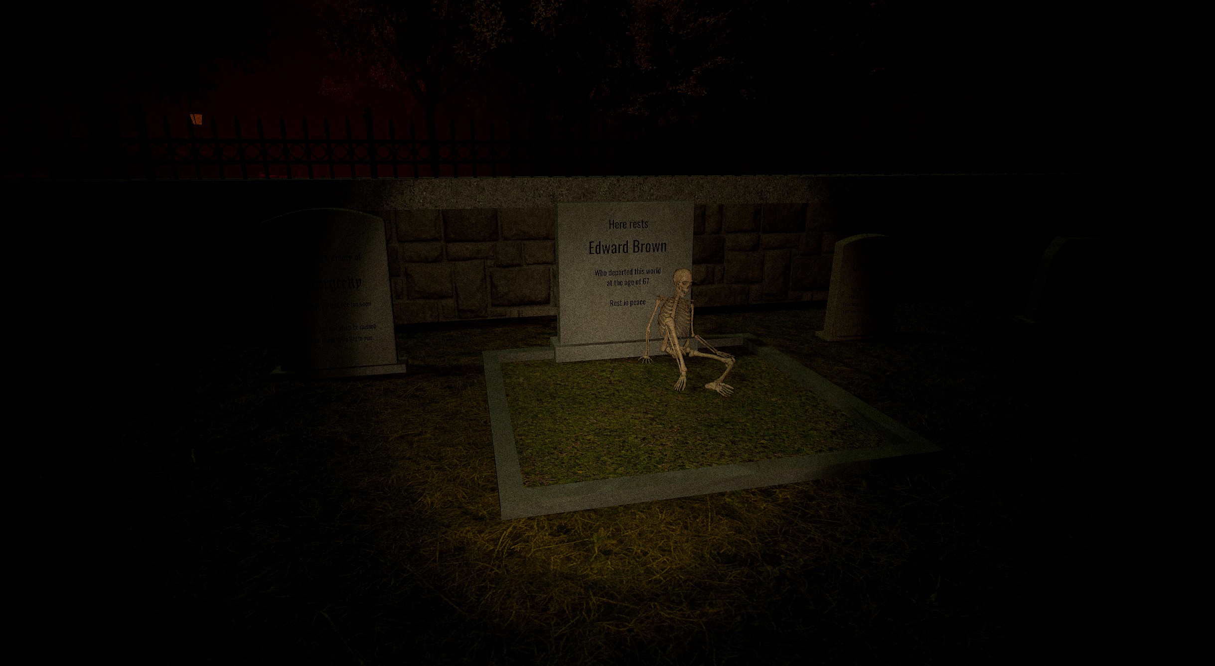 I’ve made my village turn to “Halloween Mode” which turns the sky pitch-black with pumpkins appearing around as well as a skeleton appearing on one of the graves in the churchyard.