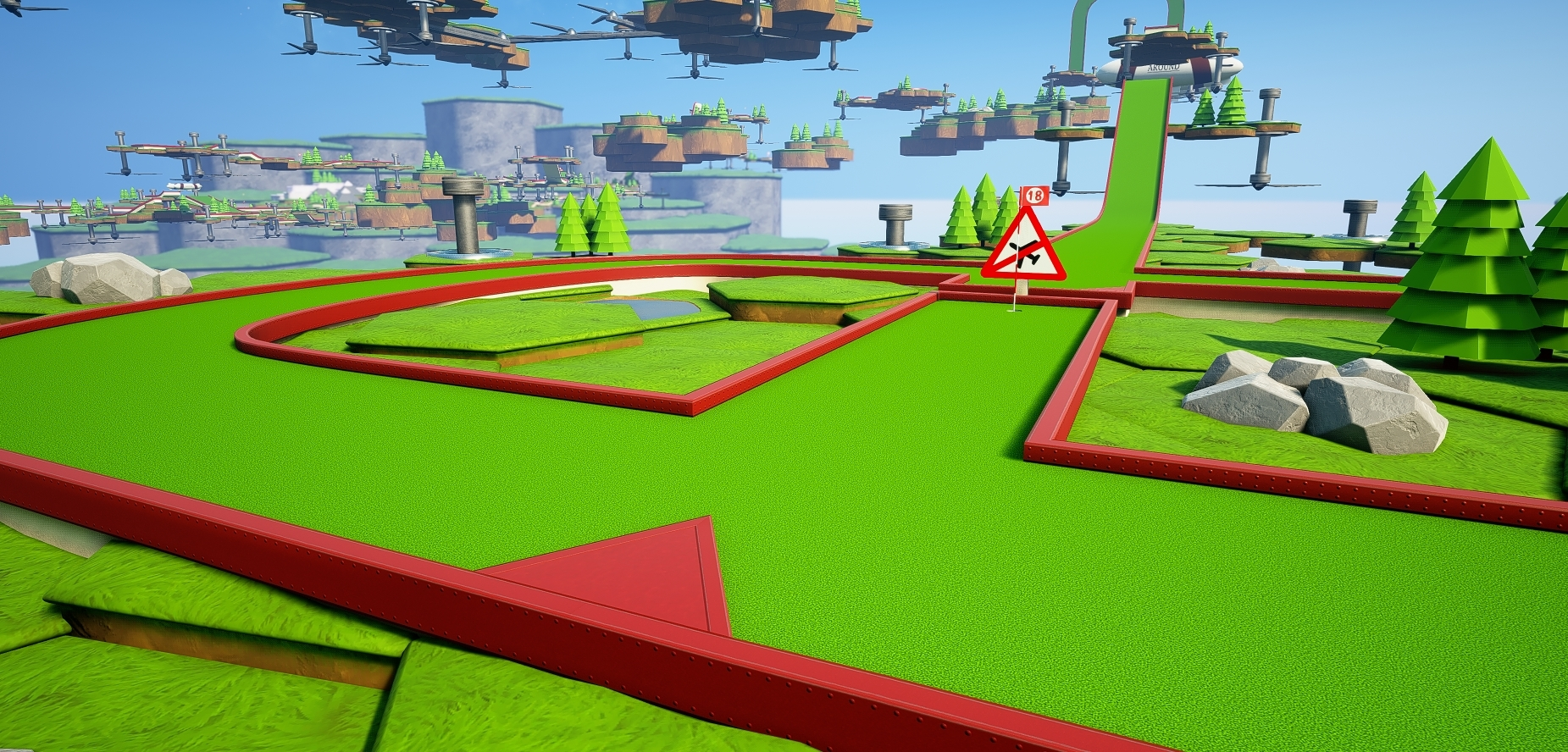 Currently, if the Minigolf ball hits any object outside of the course, it will automatically be treated as “out of bounds” and the player will need to putt again.