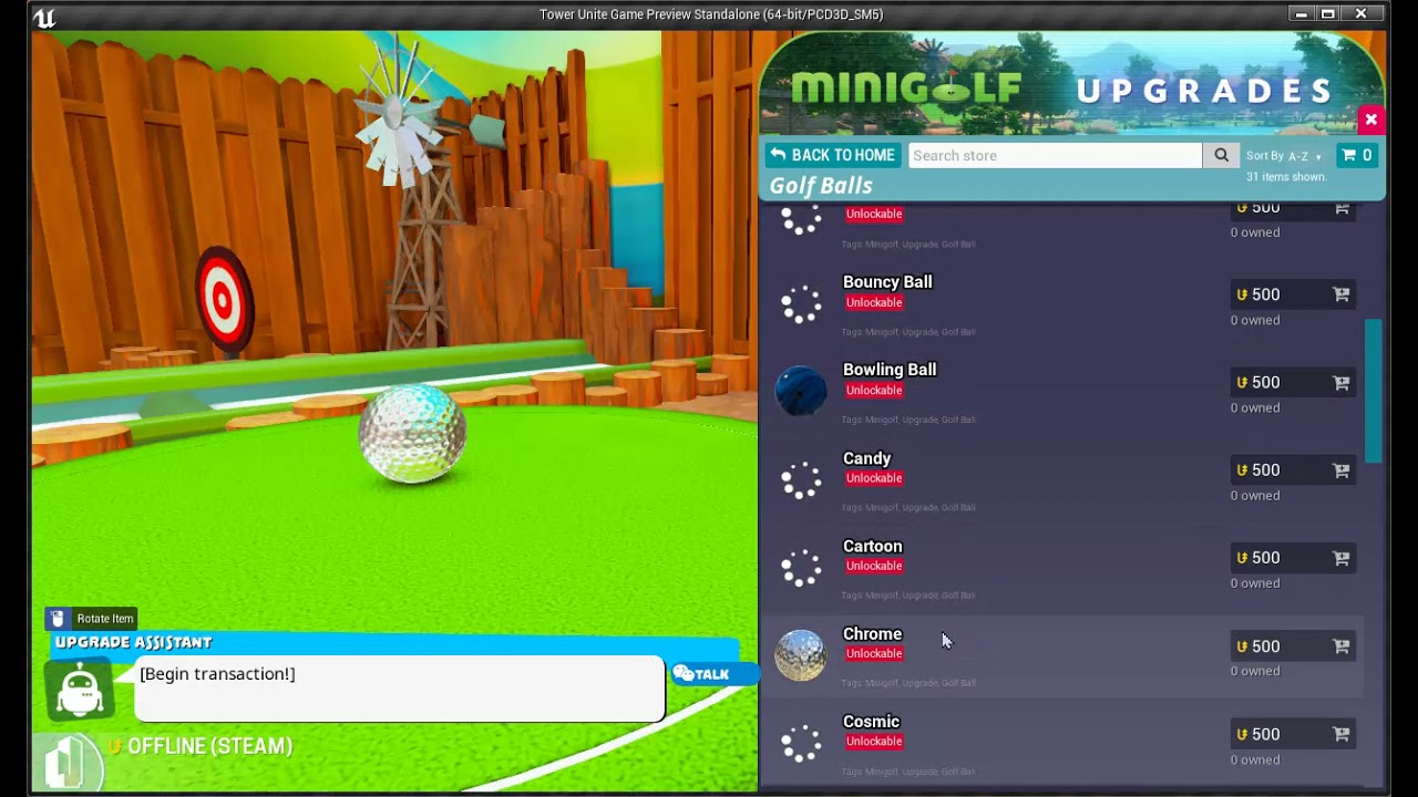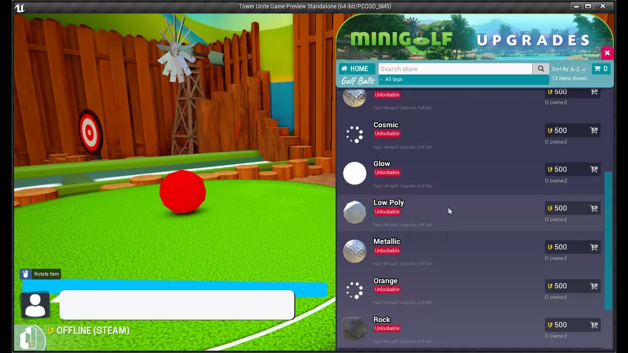 Work continues on getting Update 0.14.0.0 released. This update will include the introduction of Upgrades, customizable gameplay elements such as different Minigolf balls and trails, different Ball Race balls, and more. You can read about our progress on this update here.