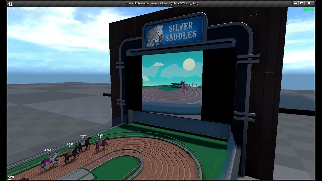 @macdguy continued working on Silver Saddles, completing the code and UI for betting and displaying horses. He also setup a camera that follows the horses around the track.
