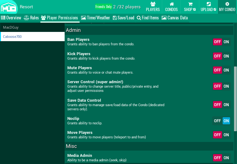 @macdguy continued working on Co-op condos, which will allow authorized users to help build a condo with the host’s items. He worked on implementing a permissions system, allowing the condo owner to specify which actions an individual can perform in their condo.